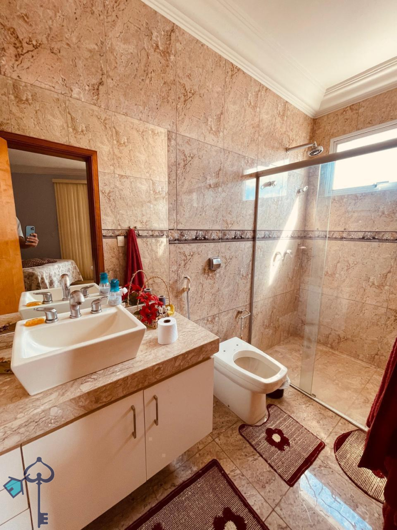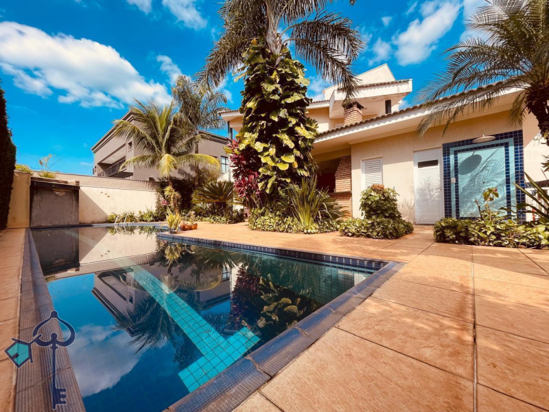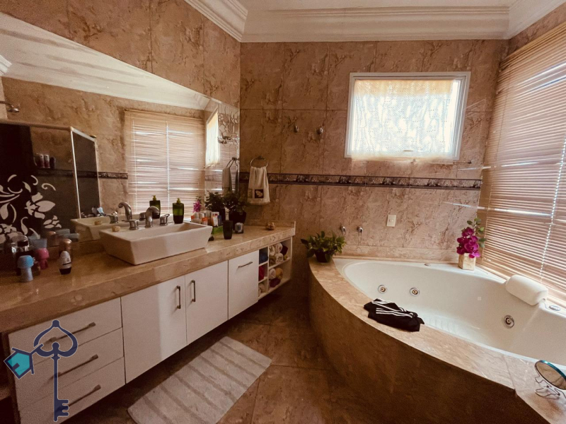 Belissimo sobrado à venda no Condominio Residencial Damha 1, Zona Leste de Rio Preto, com 4 suítes (1 master com closet e banheira e 3 com sacada), escritório com lavabo, sala de jantar integrada com sala de TV, cozinha, depósito, área de serviço, área de lazer com churrasqueira, piscina com raia para natação e cascata, sauna, e garagem (2 vagas cobertas e 2 descobertas).