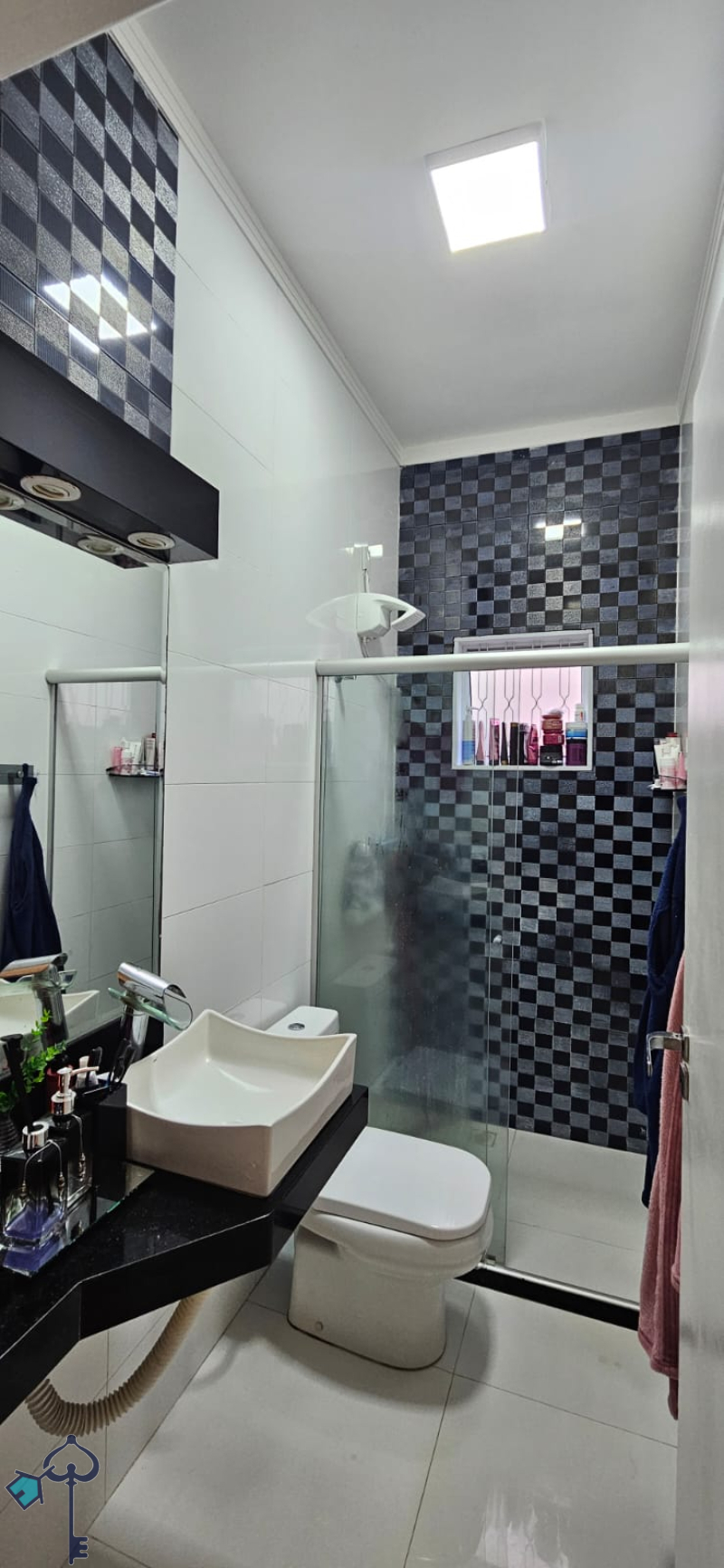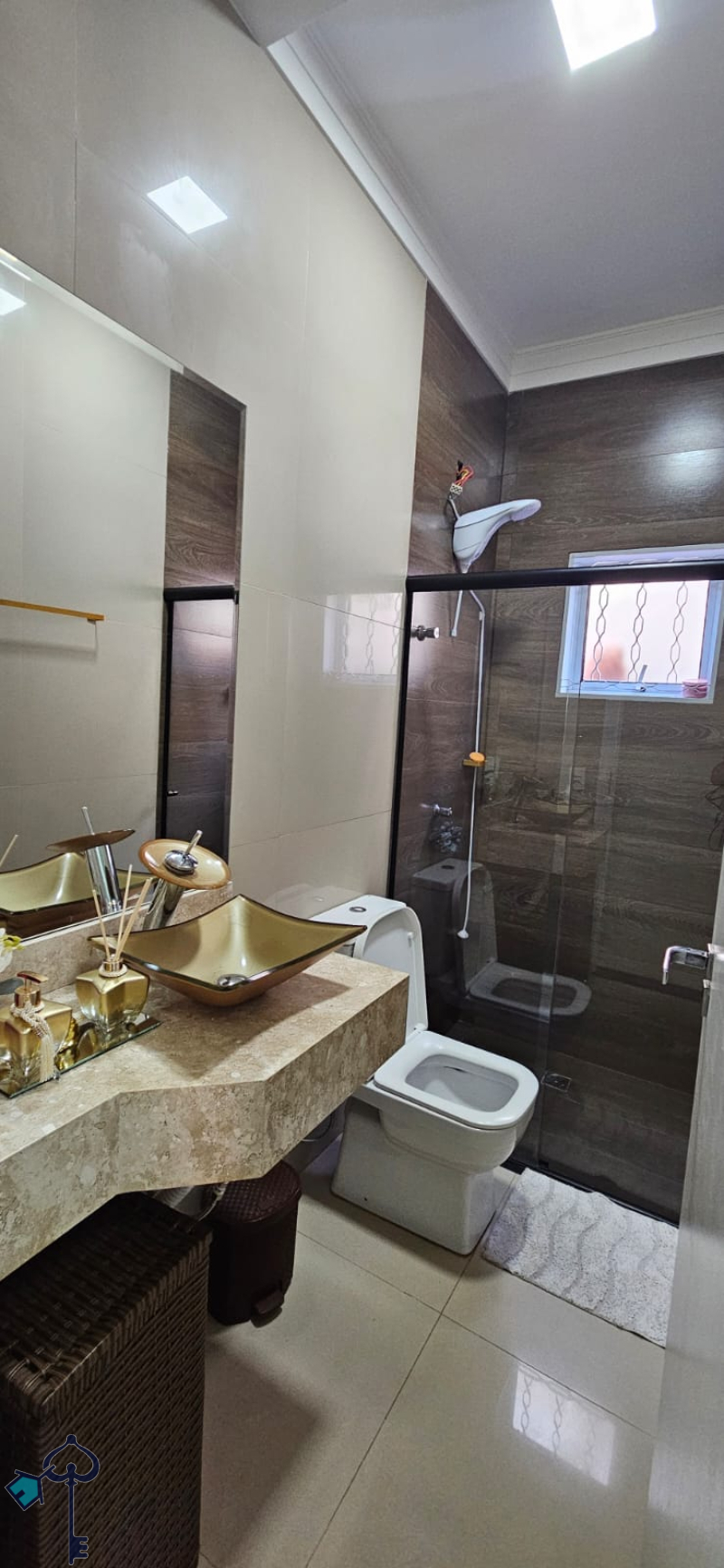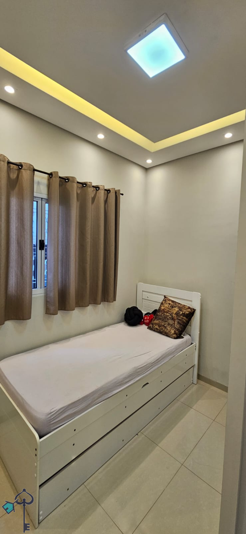 Casa rica em armários, sanca e iluminação de LED, piso porcelanato, portão eletrônico e interfone.